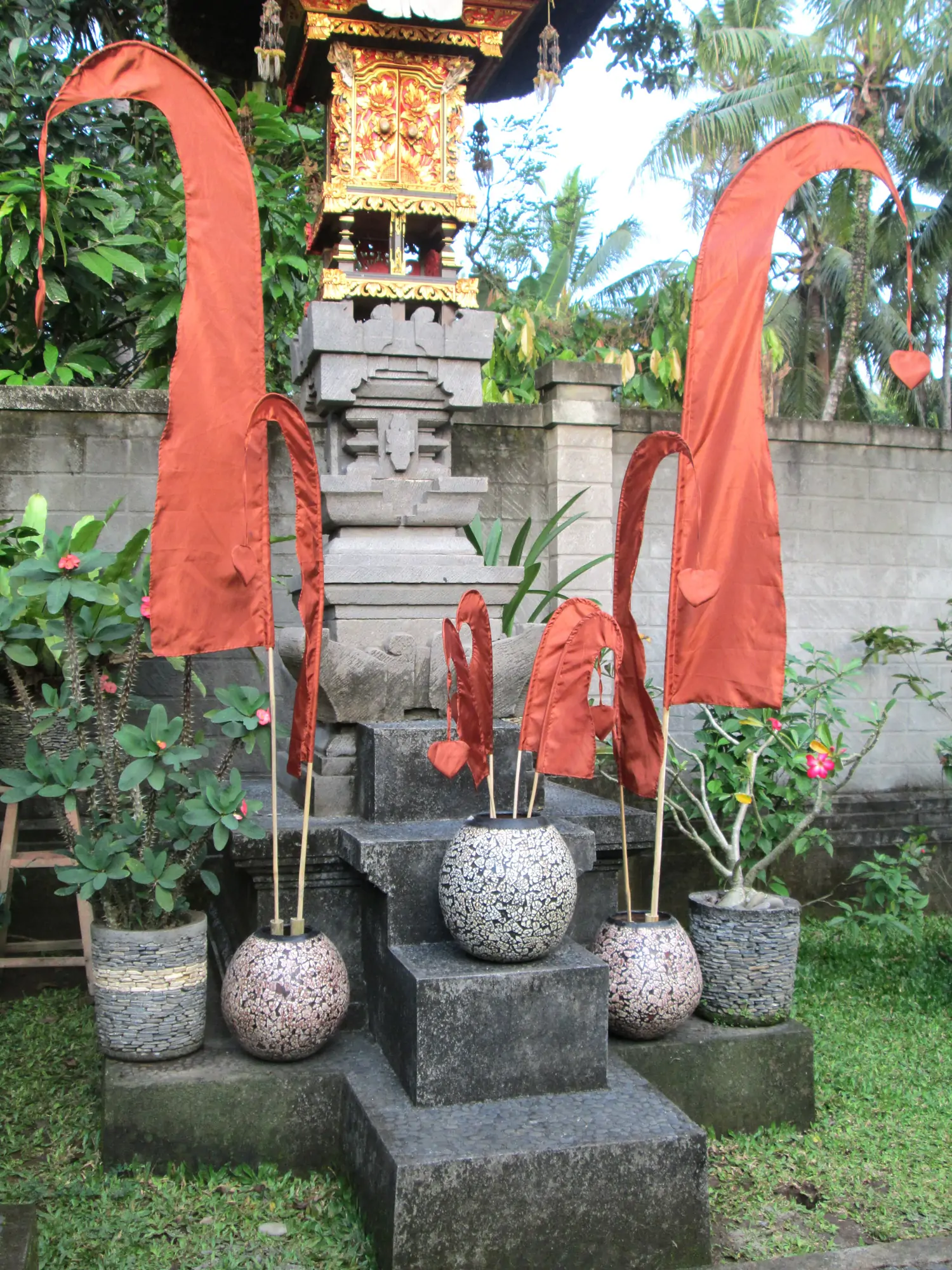 Die "Umbul Umbul" (=Schwanz des Drachens) wird hierzulande auch Balifahne, Tempelfahne, Gebetsfahne oder Gartenfahne genannt. Sie ist auf Bali nicht nur bei Feiern und Zeremonien des Hinduismus, sondern ganzjährig, ein Symbol für die Anwesenheit der Götter. Auch in westlichen Kulturkreisen hält sie immer weiter Einzug. Glück, Wohlstand und Freude soll die Umbul Umbul bringen, sowie böse Mächte fernhalten.