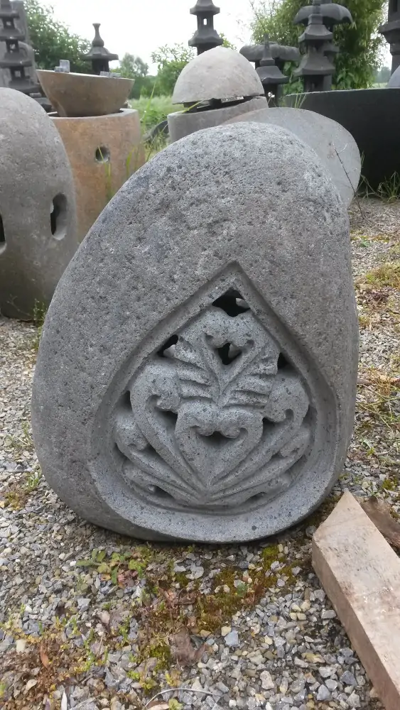 Gartenlaterne aus Flussstein, geschlitzt (Motiv), ca. 35 cm H
