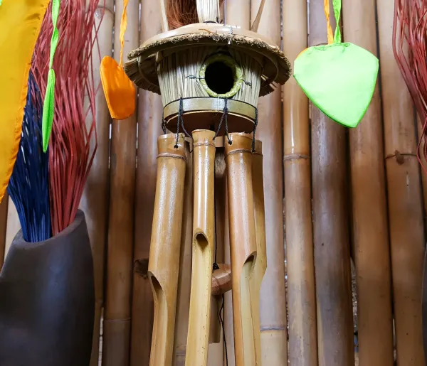 Dieses Bambus-Windspiel eignet sich hervorragend für Balkon, Garten, Terrasse und für den Innenbereich.