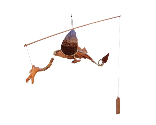 Bambus-Windspiel mit einem Drachen. Die Länge beträgt 30 cm. Natürlich