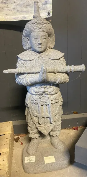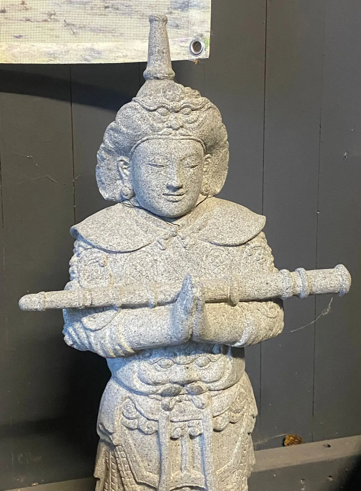 Chinesischer Krieger, stehend, Steinmetzarbeit auf Flussstein, ca. 80 cm H