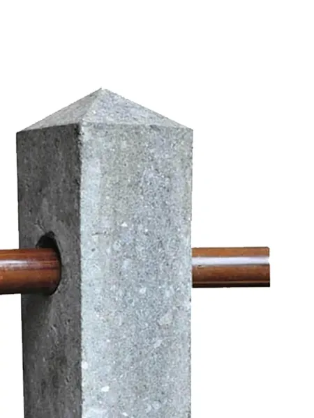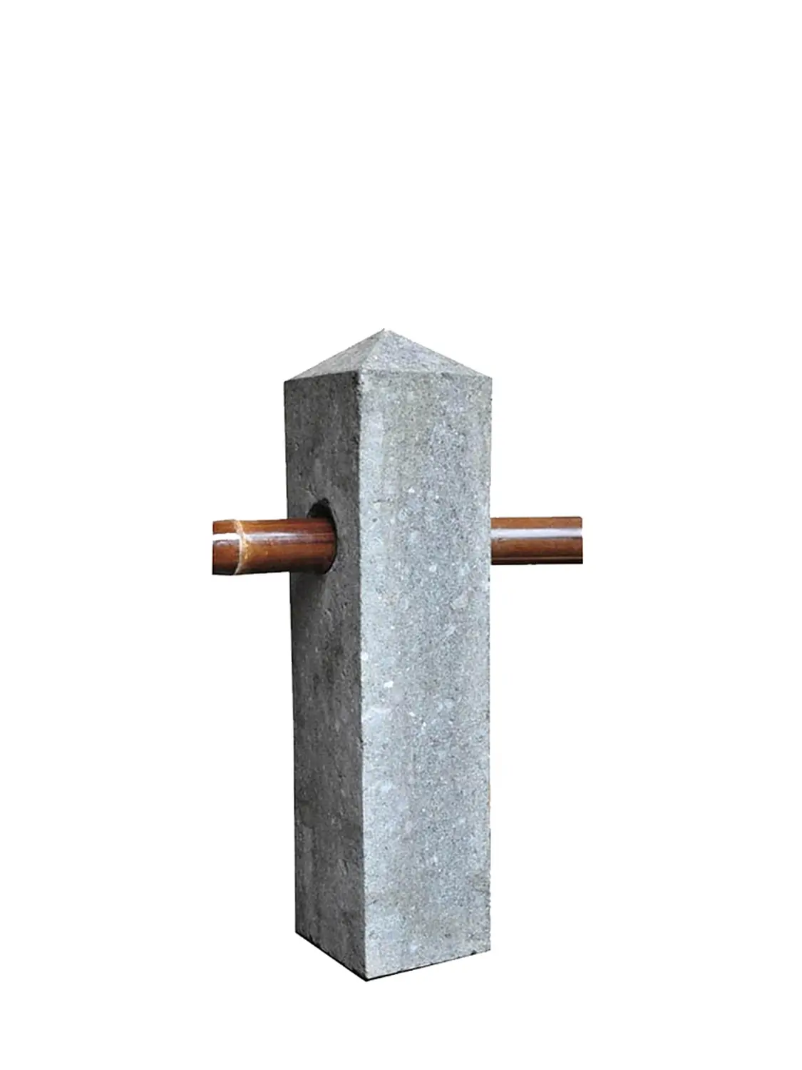 Ausstellungsstück - Dieses Zaunelement für Bambusstangen aus unserer Ausstellung in Lotte, wurde aus reinem Basanitstein (Naturstein) handgefertigt. Das Loch (Ausrichtung 180° / gerade) für die Bambusstange hat einen Durchmesser von ca. 85 mm.