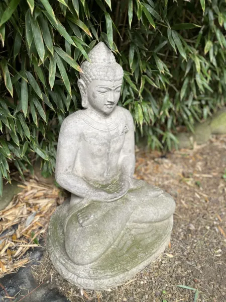 Platzieren Sie diesen Buddha in einem meditativen Winkel Ihres Gartens – vielleicht unter Bambusdach oder zwischen Kieswegen – und erleben Sie, wie er Atmosphäre schafft. Ob auf einer Terrasse, im Zen-Bereich oder im Garten, diese Figur entfaltet eine beruhigende Wirkung.