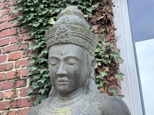 Diese schöne Skulptur ist aus hochwertigem Steinguss, absolut frost- und witterungsbeständig.