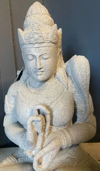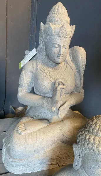 Sitzende Dewi Sri – Position Chakra „Das Rad dreht“, ca. 76 cm, Flussstein (Unikat)