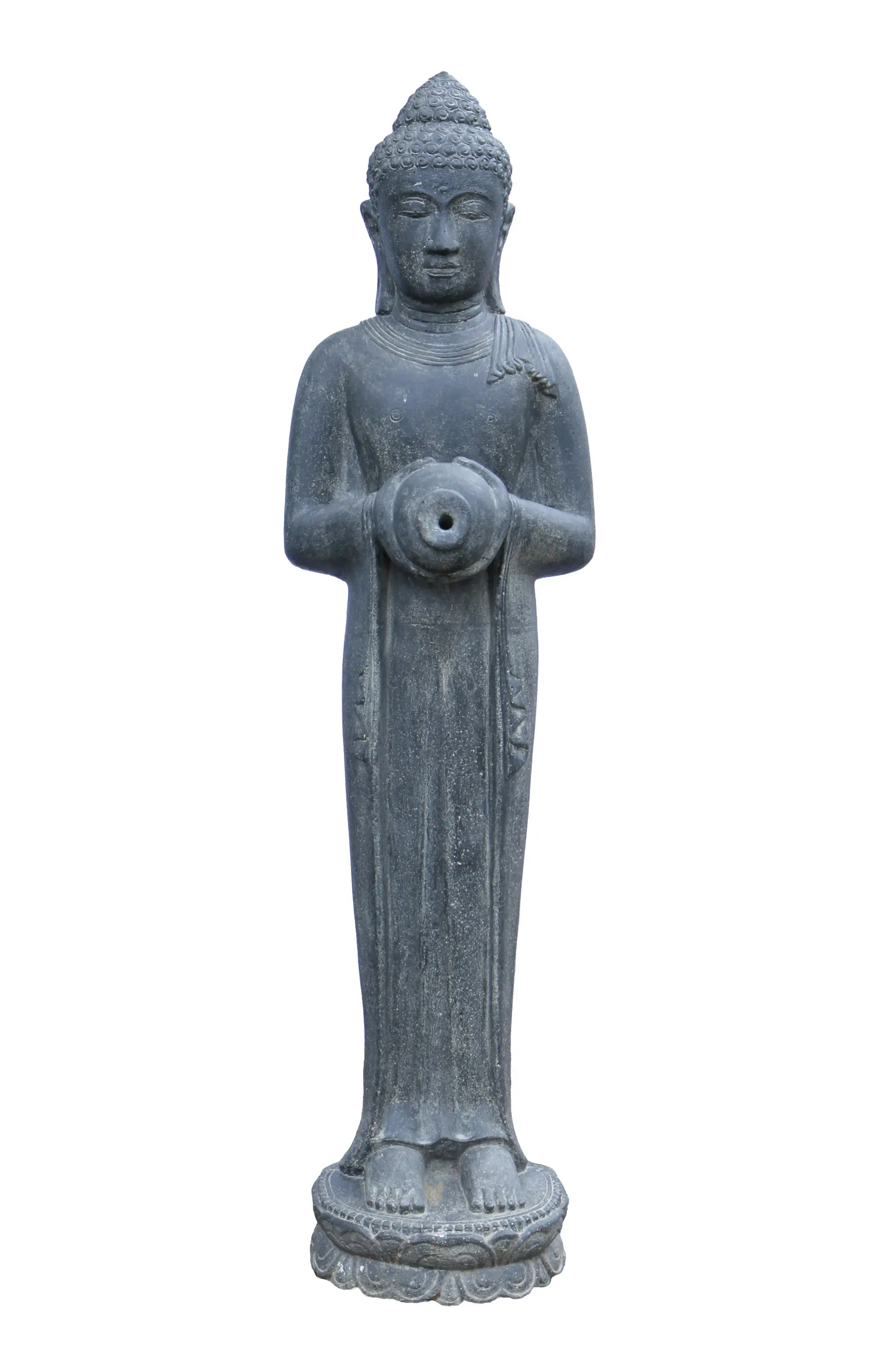 Buddha-Figur, stehend, mit Gefäß als Wasserspiel, 150 cm