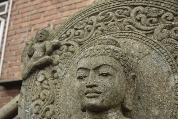 Dieses Objekt ist aus Basanit, einem vulkanischen Gestein, das aus Zentraljava stammt. Er wurde von erfahrenen Steinmetzen aus dem vollen Stein herausgearbeitet.