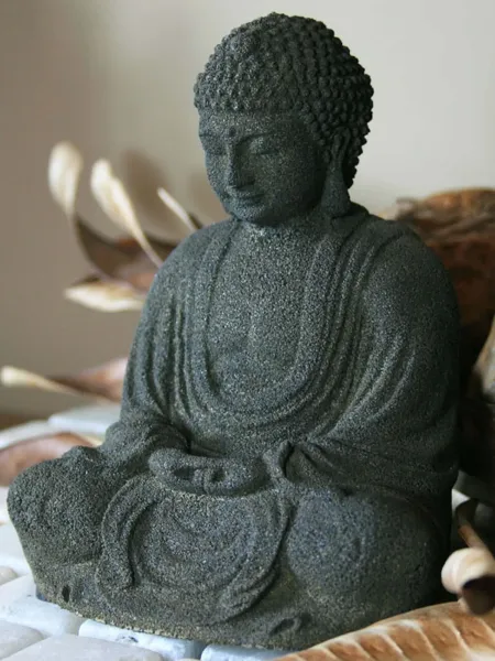 Buddha-Figur, sitzend, japanisch, 15 cm, grau