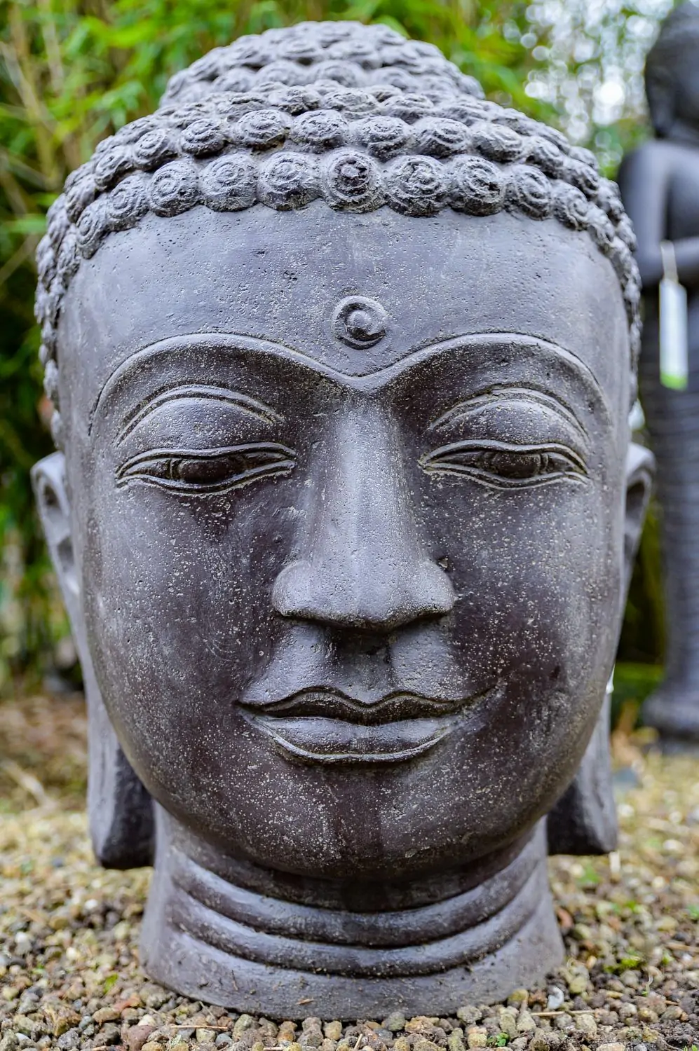 Buddha-Kopf, Steinguss – 75 cm, Antikfinish