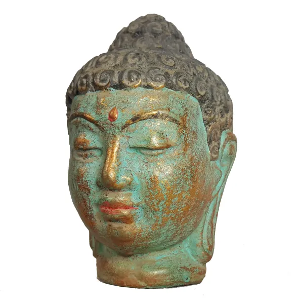 Buddha-Kopf, Steinguss, handbemalt
