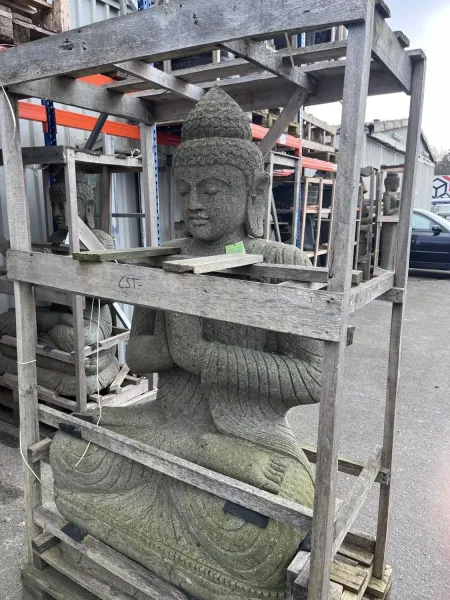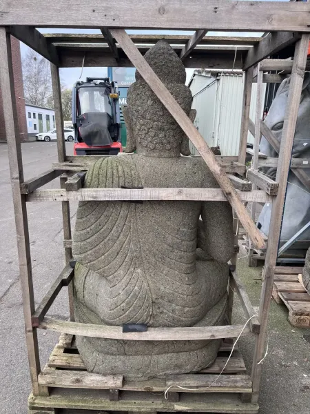 Dieser Buddha ist aus Naturstein (Basanit) gefertigt. Der Buddha hat auf den Betrachter eine angenehm, einladende Wirkung, vor allem da die Handhaltung des Buddha eine Begrüßung bedeutet. So eignet sich der Buddha perfekt für eine Position in Ihrem Eingangsbereich, von wo aus er den Besuchern eine freundliche und kontemplative Atmosphäre verheißt. Der Buddha kann zu jeder Jahreszeit draußen stehen, da er hochwertig gearbeitet und frostfest ist.