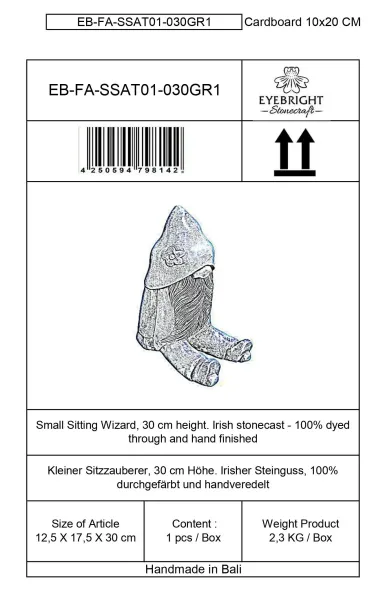 Klaus - Kleiner sitzender Zauberer, 30 cm H | Steinguss