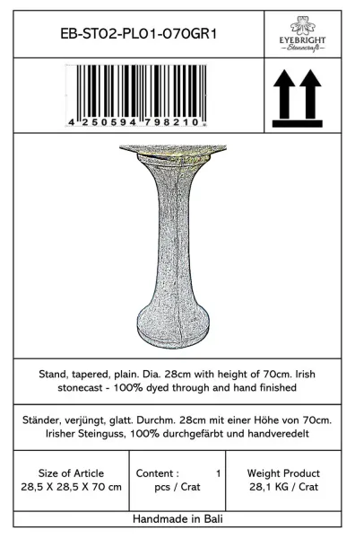 EYEBRIGHT - Stonecraft In Bali produzieren wir diesen hochwertigen Steinguss in unserer eigenen Manufaktur. Mit speziellen Verfahrenstechniken können wir detaillierte Abgüsse herstellen. Wir mischen das Rohmaterial mit Pigmenten, so dass der Guss durchgefärbt wird. Mit einer speziellen Außenfarbe setzen wir einen weiteren oberflächlichen Akzent. Während der Frostperiode sollten Sie darauf achten, dass die Figur nicht im Wasser steht, sondern z.B. auf einem Kiesbett.