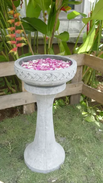 EYEBRIGHT - Stonecraft In Bali produzieren wir diesen hochwertigen Steinguss in unserer eigenen Manufaktur. Mit speziellen Verfahrenstechniken können wir detaillierte Abgüsse herstellen. Wir mischen das Rohmaterial mit Pigmenten, so dass der Guss durchgefärbt wird. Mit einer speziellen Außenfarbe setzen wir einen weiteren oberflächlichen Akzent. Während der Frostperiode sollten Sie darauf achten, dass die Figur nicht im Wasser steht, sondern z.B. auf einem Kiesbett.