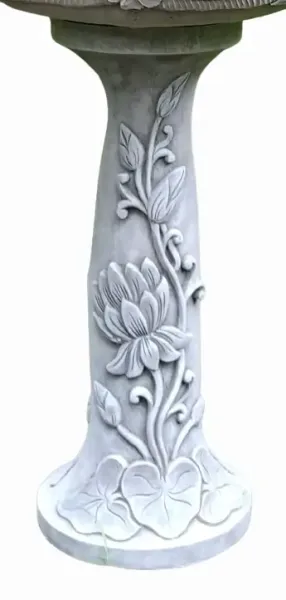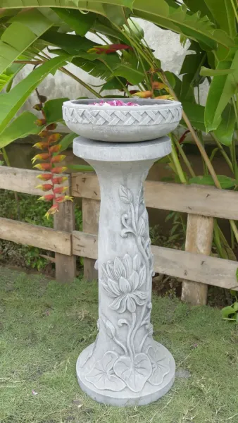 Rinjani - Sockel, verjüngt, mit Lotus-Motiv, Ø 30cm, 71cm H | Steinguss