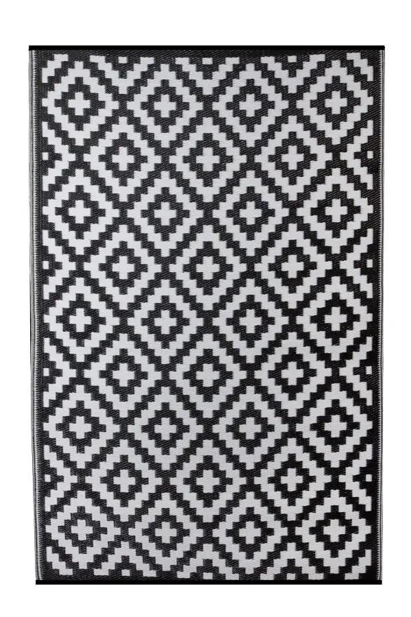 Fab Hab - Outdoor-Teppich schwarz , geometrisches Muster, für den Innen- und Außenbereich (120 cm x 180 cm)