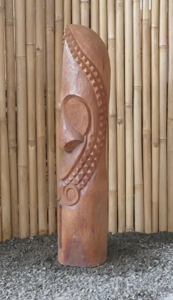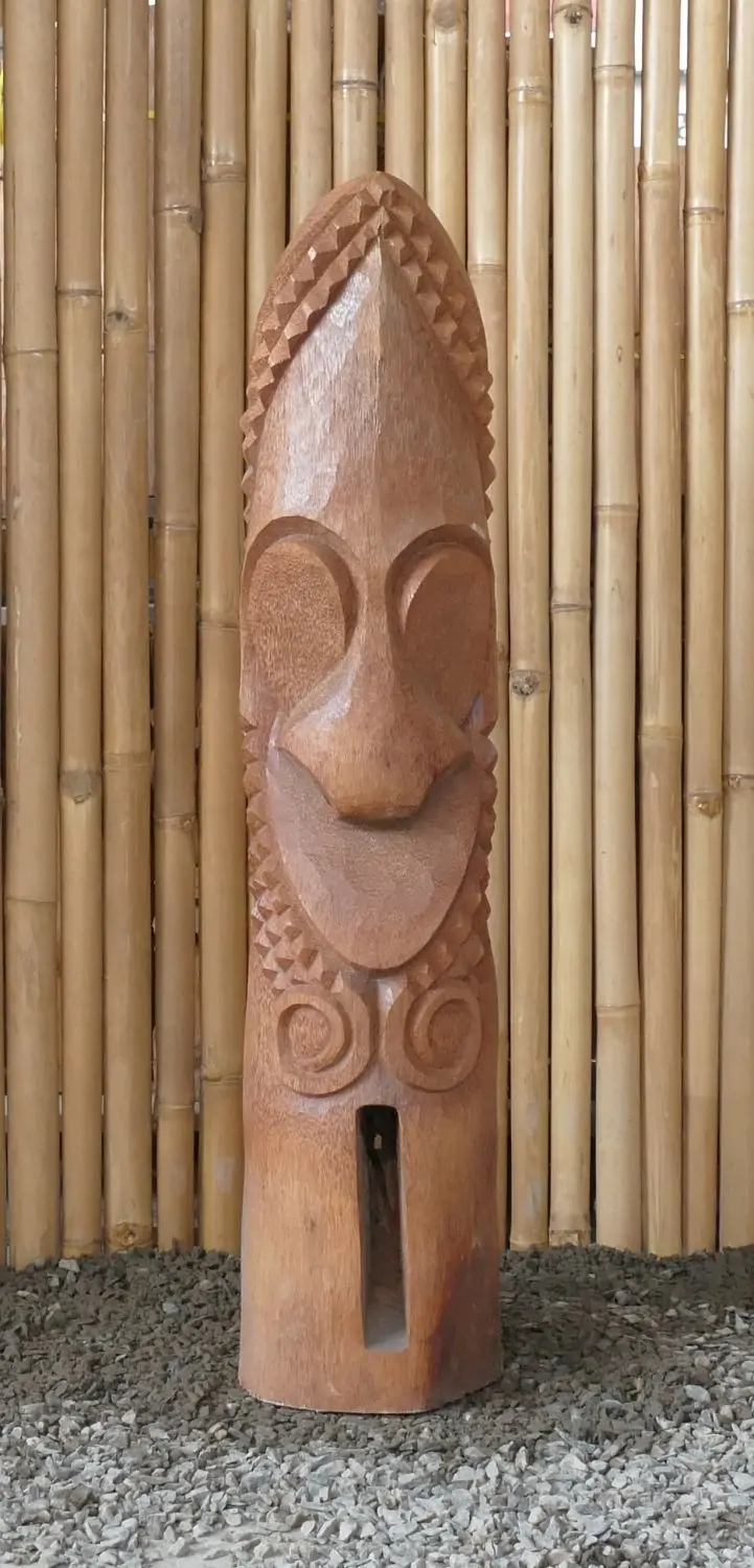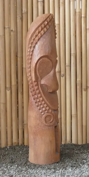 Tiki-Polynesien-Statue - HNADARBEIT aus Kokosnussholz, ca. 100cm hoch mit natur/transparenter Farbe, Ø ca.18-28 cm. Die Tiki Statuen sind von Hand gearbeit, jedes einzelne ist ein Unikat. Von erfahrenen Künstlern aus dem Stamm der Kokospalme gearbeitet.