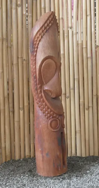 Tiki-Polynesien-Statue - HANDARBEIT aus Kokosnussholz, ca. 125cm hoch mit natur/transparenter Farbe, Ø ca. 18-28 cm. Die Tiki Statuen sind von Hand gearbeit, jedes einzelne ist ein Unikat. Von erfahrenen Künstlern aus dem Stamm der Kokospalme gearbeitet.