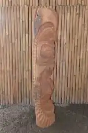 Tiki-Statue im polynesischen Stil. HANDARBEIT aus Kokosnusspalme 150cm. Durchmesser ca. 18-28cm. Modell 4 - kompletter Körper. Die Tiki Statuen sind von Hand gearbeit, jedes einzelne ist ein Unikat. Von erfahrenen Künstlern aus dem Stamm der Kokospalme gearbeitet.