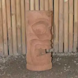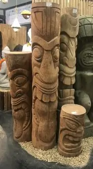 Tiki-Statue im polynesischen Stil - HANDARBEIT aus Kokosnussholz ca. 18-28 cm Durchmesser ca. 50 cm Höhe Modell 2 offene Münder. Die Tiki Statuen sind von Hand gearbeit, jedes einzelne ist ein Unikat. Von erfahrenen Künstlern aus dem Stamm der Kokospalme gearbeitet.