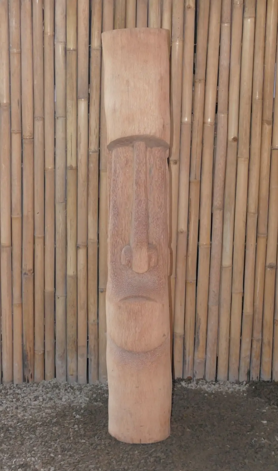 Tiki-Statue im polynesischen Stil. HANDARBEIT aus Kokosnusspalme 150cm Höhe. Durchmesser ca. 18-28 cm. Modell 5 - Rapa Nui. Die Tiki Statuen sind von Hand gearbeit, jedes einzelne ist ein Unikat. Von erfahrenen Künstlern aus dem Stamm der Kokospalme gearbeitet. Das Beispielbild kann vom gelieferten Artikel variieren, Gewicht und Ausführung kann unterschiedlich sein.