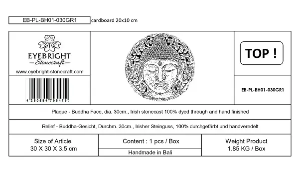 Anando - Plaque - Buddha Gesicht, Ø 30cm | Steinguss