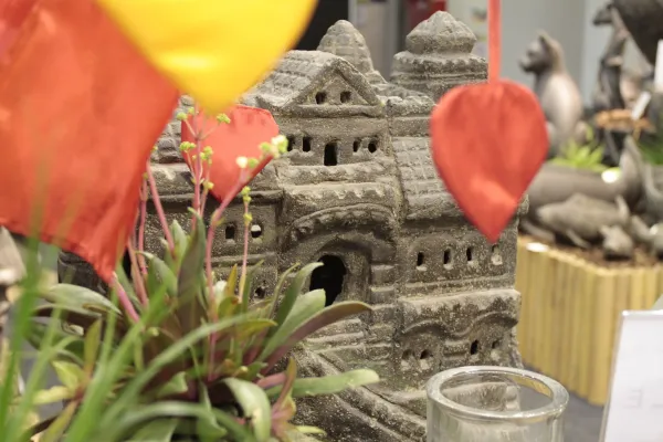 Die Skulptur wurde aus Steinguss hergestellt und mit einem Finish veredelt. Die Färbung kann variieren und durch Witterungseinflüsse verblassen. Auf die Frostbeständigkeit wirkt sich das Finish nicht aus. Die Figuren eignen sich für den Einsatz im Innen- und Außenbereich.