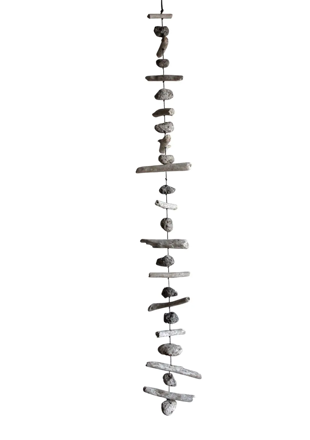 Deko Hänger -Treibholz und Stein ca.150cm ca. 12x12x150cm, weiß lasiert