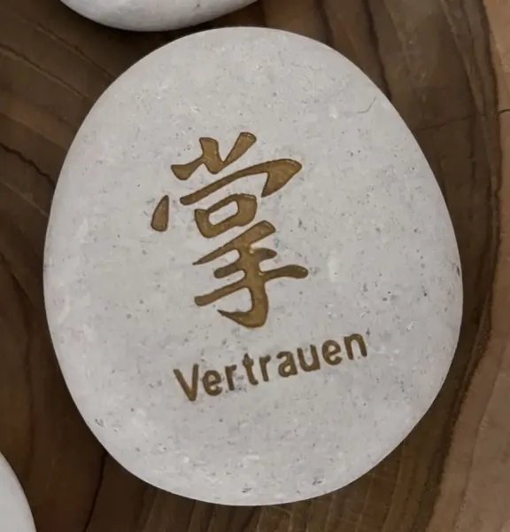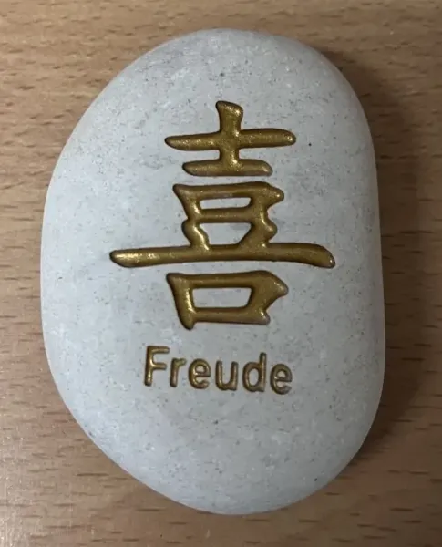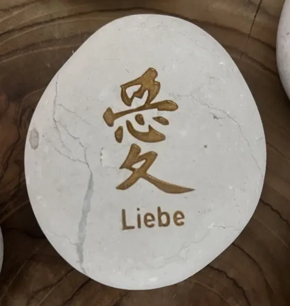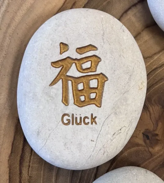 Ein schöner und eleganter Glücksstein - Chinesisches Zeichen, weiß / gold, deutscher Text, Satz mit 7 |Flussstein Diese Glückssteine sind auch als "Handschmeichler" bekannt. Es handelt sich um echte Flusskiesel aus den Flüssen Balis, denen bestimmte heilende oder stimmungsaufhellende Eigenschaften nachgesagt werden. Handschmeichler sind Gegenstände, die sich perfekt an die Größe der Hände anpassen. Die glatte Oberfläche und die abgerundeten Kanten vermitteln ein angenehmes und komfortables Gefühl bei der Berührung. Ein Handschmeichler kann, ähnlich wie Klangkugeln, zur Entspannung eingesetzt werden. 7 Steine sind im Set enthalten. Glück, Liebe, Vertrauen, Energie, Frieden, Einfachheit, Freude