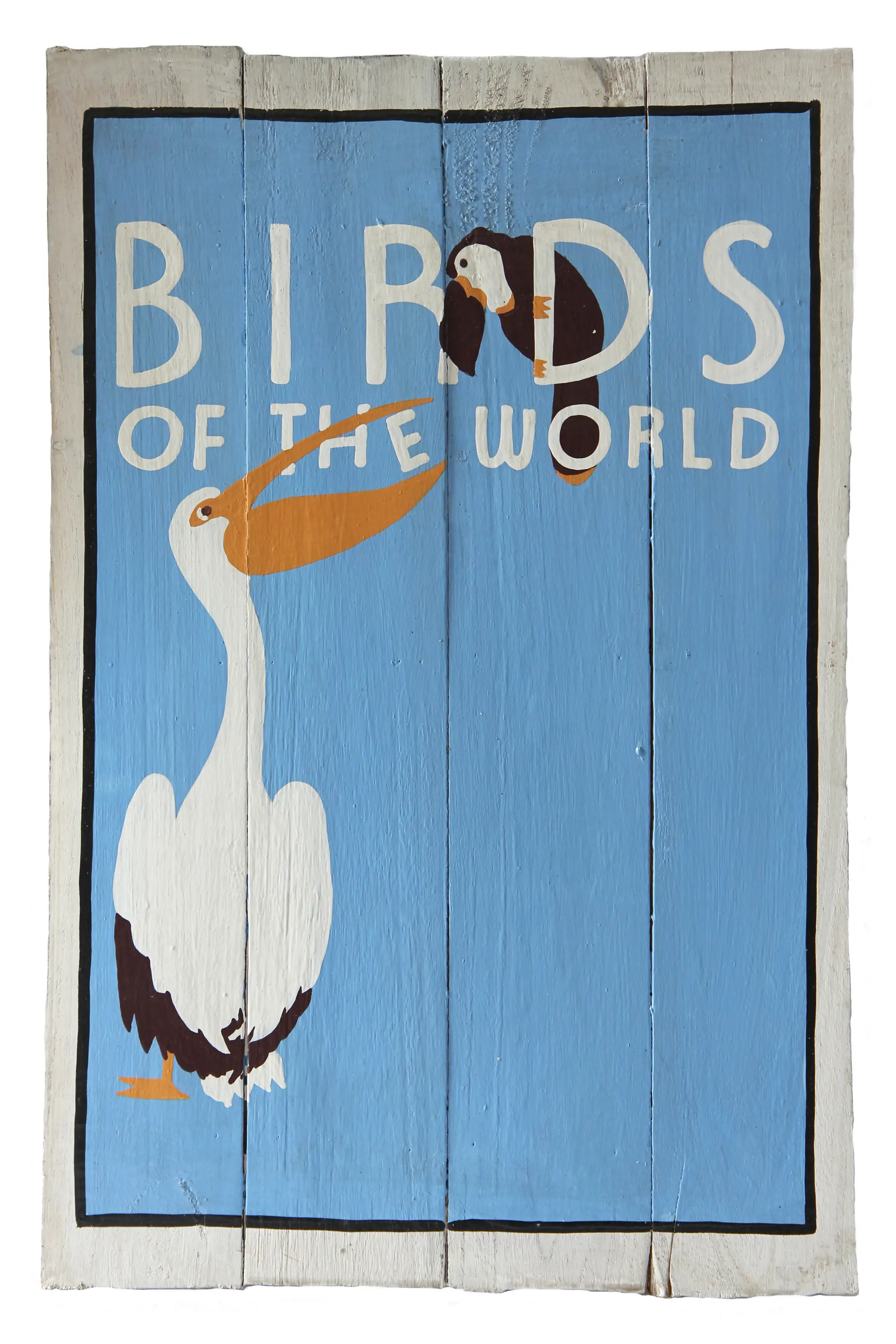 Handbemaltes Schild „Birds of the World“, 60 x 40 cm
