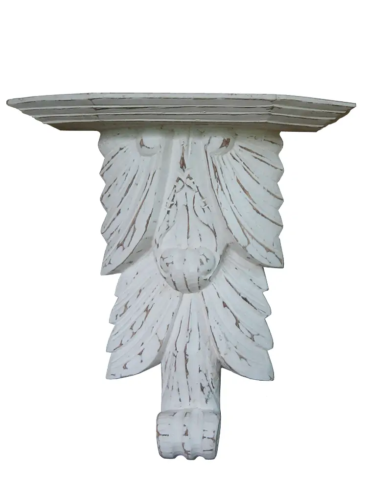 Konsole - verziertes Regal aus Holz zum Hängen ca.35x15x35cm. Albasia Holz - weiß lackiert