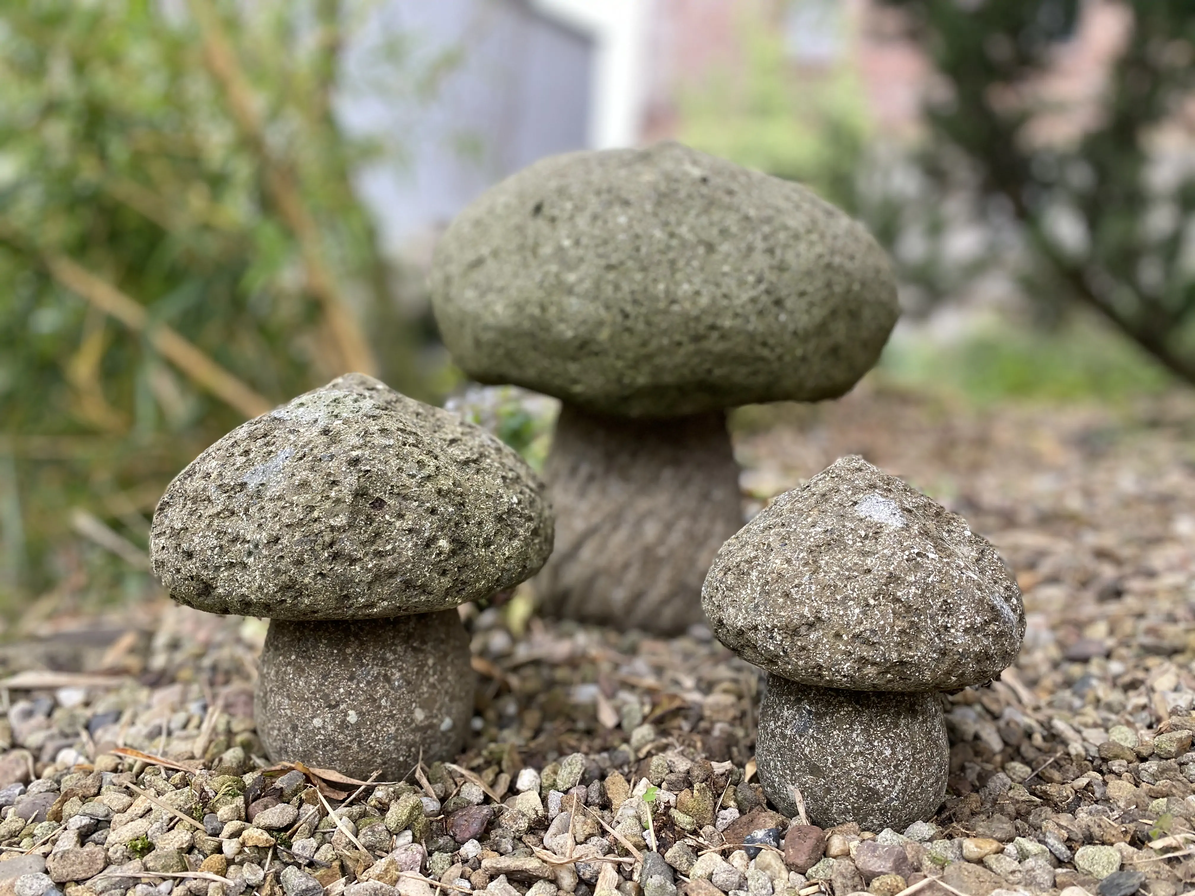 Aus vollem, reinem Naturstein (Basanit) gemeißelt, absolut wetterbeständig.