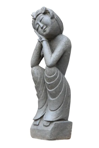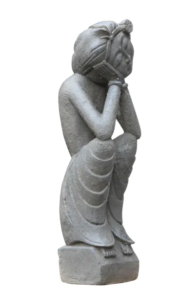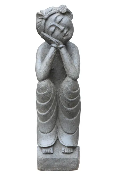 Die zwei Skulpturen wurden aus Steinguss hergestellt und mit einem Finish veredelt. Die Färbung kann variieren und durch Witterungseinflüsse verblassen.