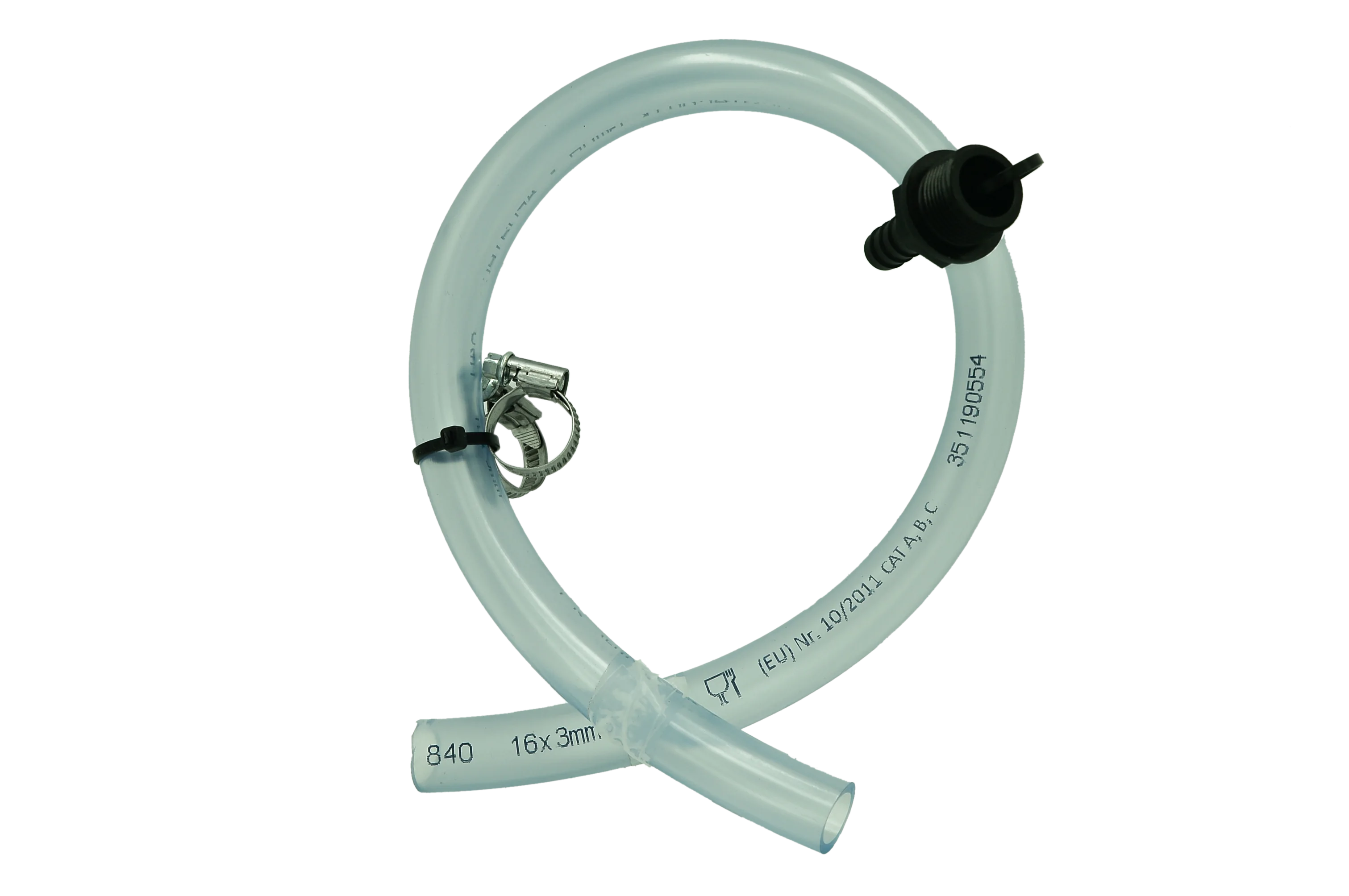 Zubehörartikel für Wasserspiele bestehend aus Schlauch und Schlauchschelle.