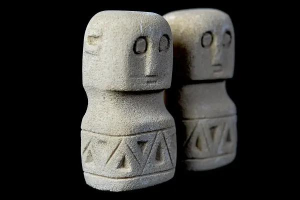 handgearbeitete, dekorative Statuen aus Naturstein, primitives Motiv, 2er Set