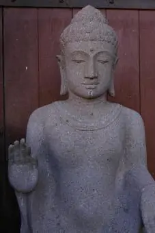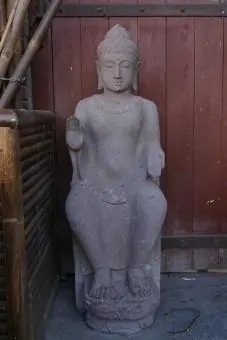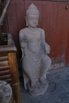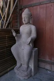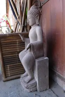 Ein Buddha, der durch seine feine Ausarbeitung und Ausstrahlung überzeugt. Der sitzende Buddha wurde aus Flussstein, einem Granit ähnlichen Stein, gearbeitet. Dieser Stein ist härter als der bei uns übliche Basanitstein und lässt sich dadurch detailierter und präziser bearbeiten. Nur wenige Künstler haben die Fähigkeiten diesen Stein zu einem Highlight zu verarbeiten.
