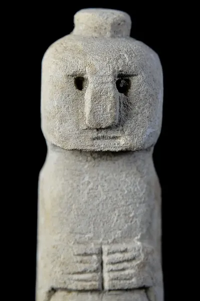 handgearbeitete, dekorative Statue aus Naturstein, primitives Motiv