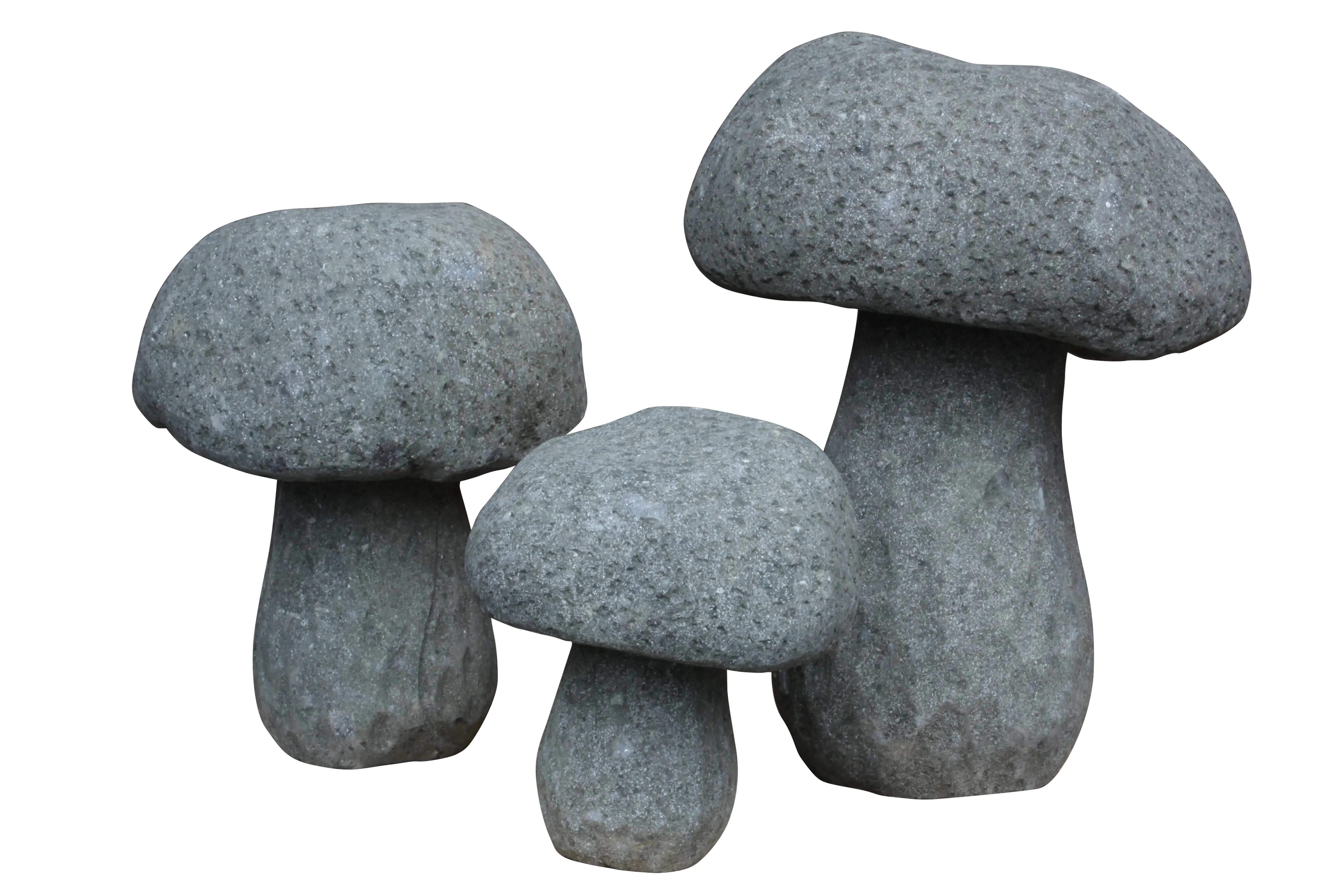 Dieser handgearbeitete und wunderschöne Deko-Pilz ist aus vollem, reinem Naturstein (Basanit) gemeißelt, absolut wetterbeständig.