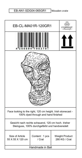 Aras - Gesicht nach rechts schauend, 120 cm H | Steinguss