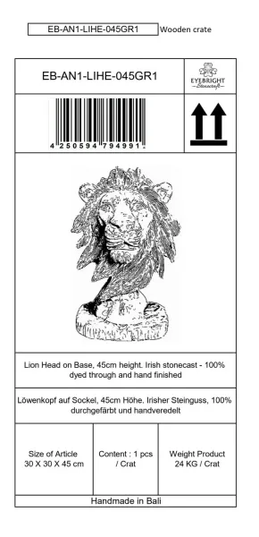 Cormac - Löwenkopf auf Sockel, 45cm H | Steinguss