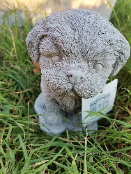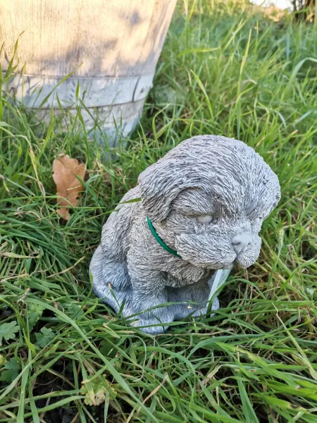 Steinfigur Hund, kleiner Welpe "Fluffy Puppy", Gartenfigur, Tierfigur, 18 cm hoch