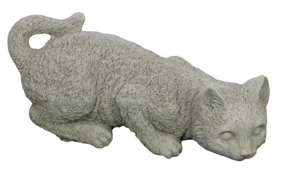 Steinfigur lauernde Katze, Gartenfigur, Tierfigur, 30 cm lang