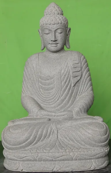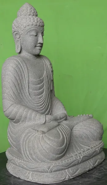 Sitzender Buddha aus Riverstone in Dhyana-Stellung - Geste der Meditation, H. 80cm.