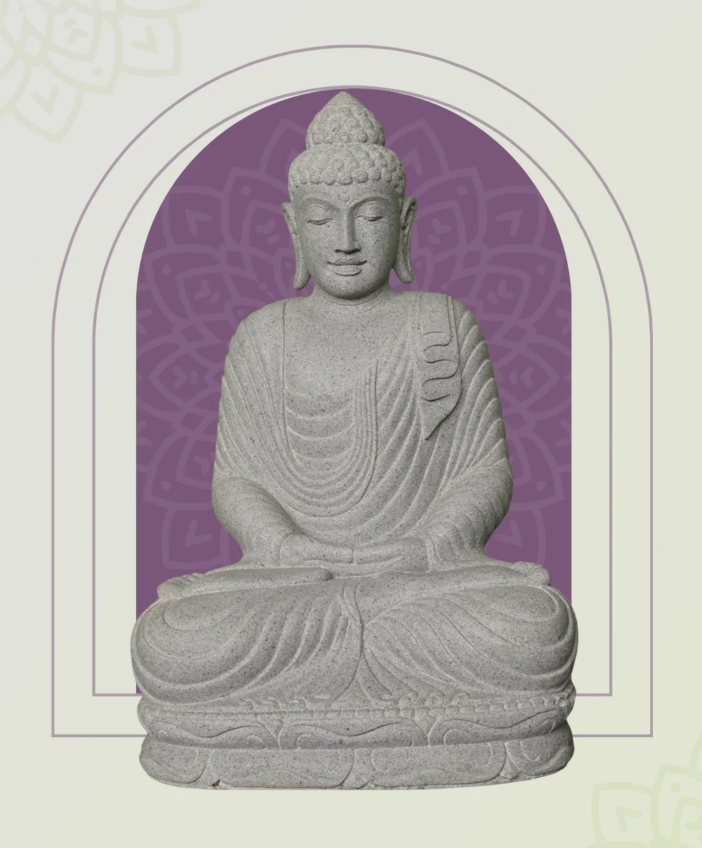 In der Dhyana-Mudra – mit gefalteten Händen im Schoß – symbolisiert dieser Buddha tiefe Meditation und innere Ruhe. Er lädt zum Innehalten ein, spendet Ruhe und ist ein harmonischer Ruhepol für Garten, Terrasse oder Wohnraum.
