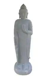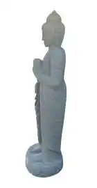 Standing Buddha, with Lotus flower, Natural stone (river stone) A Buddha, which convinces by its fine elaboration and charisma. The sitting Buddha was made of river stone, a stone similar to granite. This stone is harder than the basanite stone commonly used in our country and can therefore be worked in greater detail and with greater precision. Only few artists have the skills to turn this stone into a highlight. Natural stone (river stone), stonemasonry