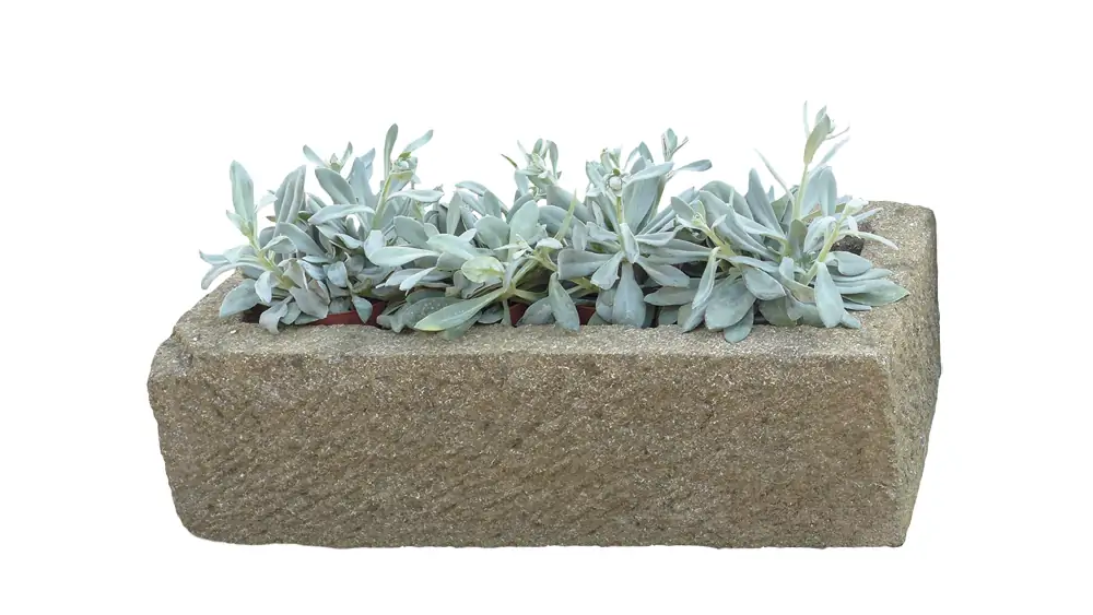 Der rechteckige Trog mit bossierter Außenfläche wurde in traditioneller Handarbeit gefertigt und ist absolut frostsicher und wetterfest. Somit können Sie den Trog auch im Winter im Freien stehen lassen.