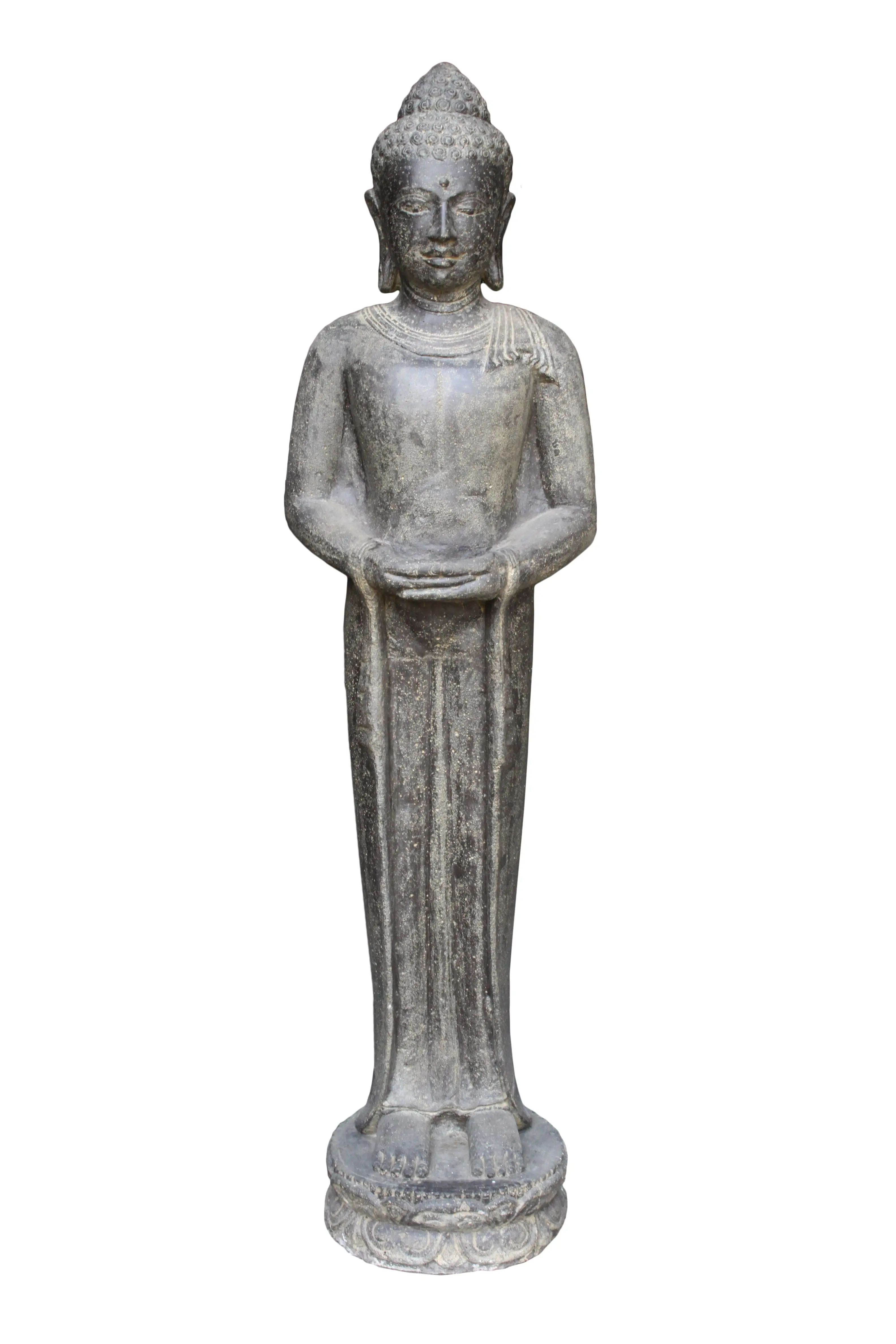 Die Buddhafigur hat beide Hände locker im Schoß liegen, eine Hand liegt auf der anderen, die Handflächen zeigen nach oben: Diese Handhaltung symbolisiert die Meditation (Dhyana mudra). Bei dieser Variante aus Kunststein, wird mit mehr Flüssigkeit gearbeitet, die Figuren bekommen dadurch eine deutlich glattere Oberfläche.Alle Pressvarianten werden mit einem Antikfinish geliefert, welches ebenfalls oberflächlich aufgetragen wird.Die Herstellung erfolgt durch bewährte Werkstätten in Südostasien mit denen wir schon seit vielen Jahren erfolgreich zusammenarbeiten.