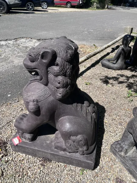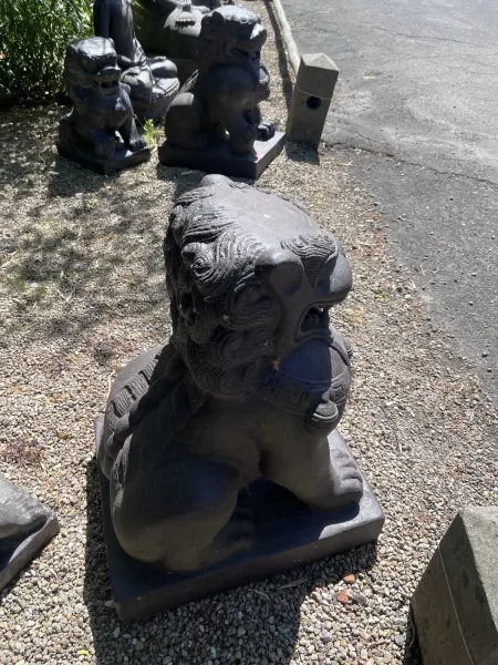 Ausstellungsstück - Tempel-Löwen,2er-Set Steinguss, 75cm HöheDas Modell ist schon längere Zeit in unserer Ausstellung; die Original Farbe ist teilweise abgeregnet. Mittlerweile hat die Skulptur schöne Patina angesetzt. Steinguss, handgefertigt & farbig. Wenn Sie ein Liebhaber von fernöstlichen Skulpturen sind und etwas ganz Besonderes suchen, dann ist dieses einzigartige Tempellöwen-Paar genau das Richtige für Sie. Die Skulpturen bestichen durch ihre weichen Formen aus Steinguss. Die Figuren sind ein dekorativer Blickfang vor dem Haus oder im Garten. Die Löwen werden Ihnen zu jeder Jahreszeit Freude in Ihrem Garten bringen.