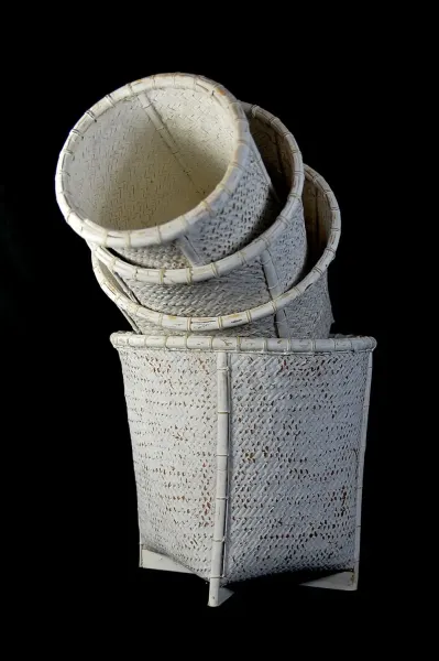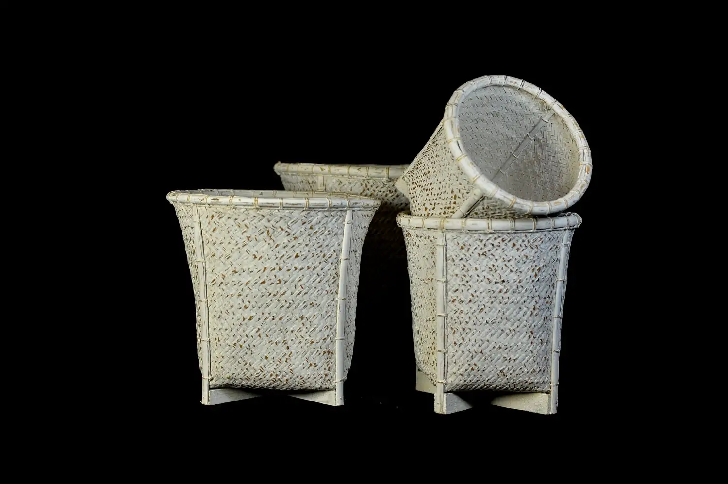 4er Set Bambus Körbe auf Rattan Rahmen. Ideal als Aufbewahrungsgefäß und zur Dekoration.