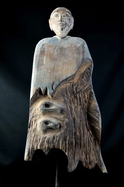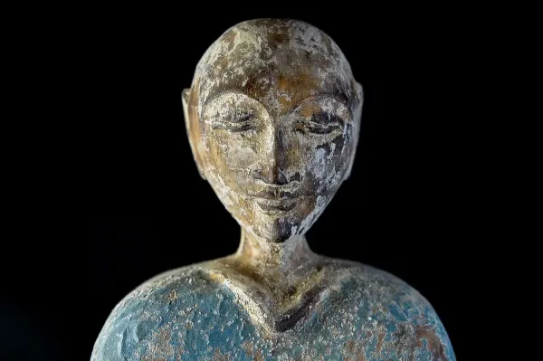 handgearbeiteter, dekorativer Buddha-Kopf aus Holz